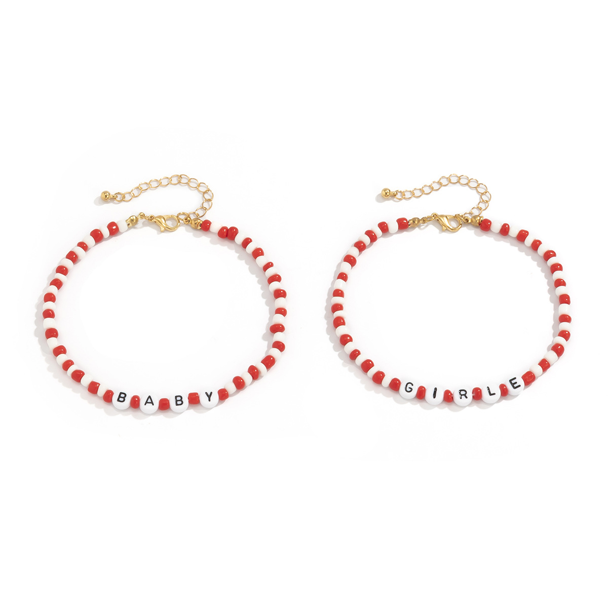 Bohemian Holiday Style Red Rice Bead Beaded Anklet