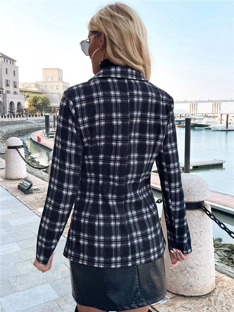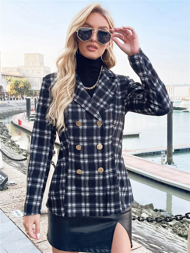 Autumn And Winter Long-sleeved Double-breasted Jacket With Collar Print