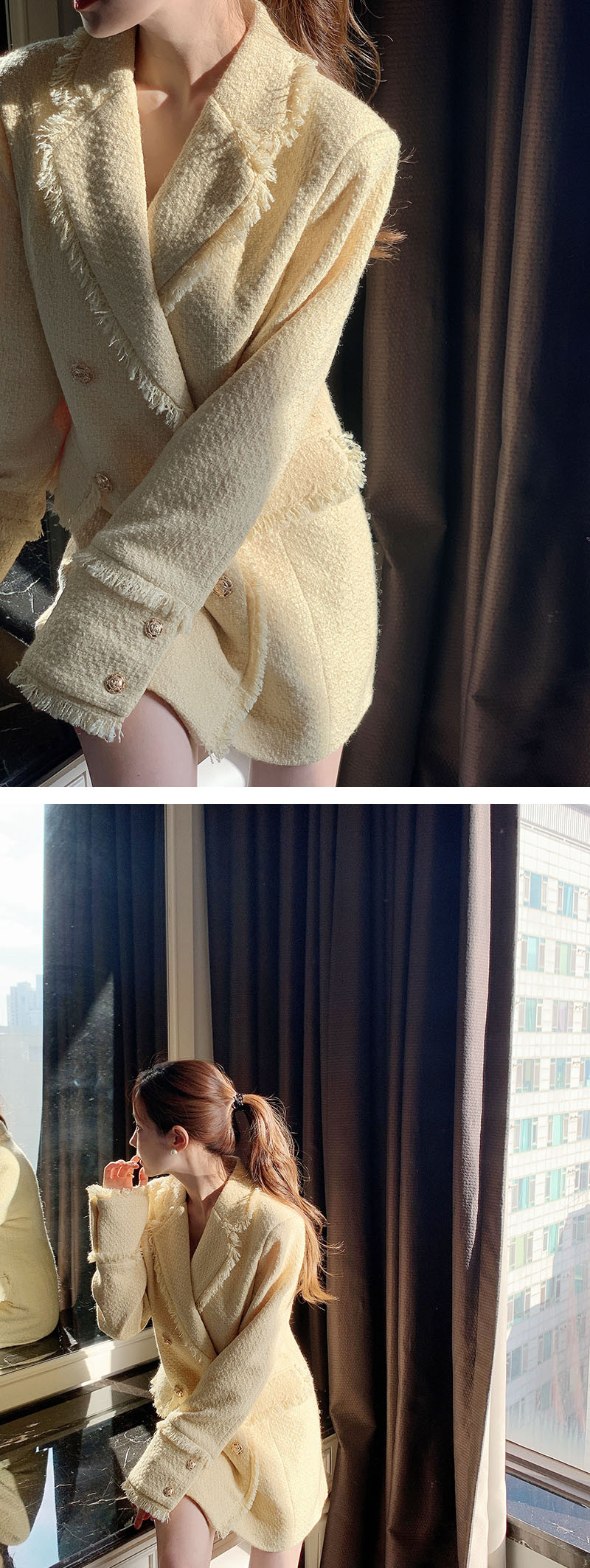 Double-Breasted Loose Mid-Length Jacket With Suit Collar