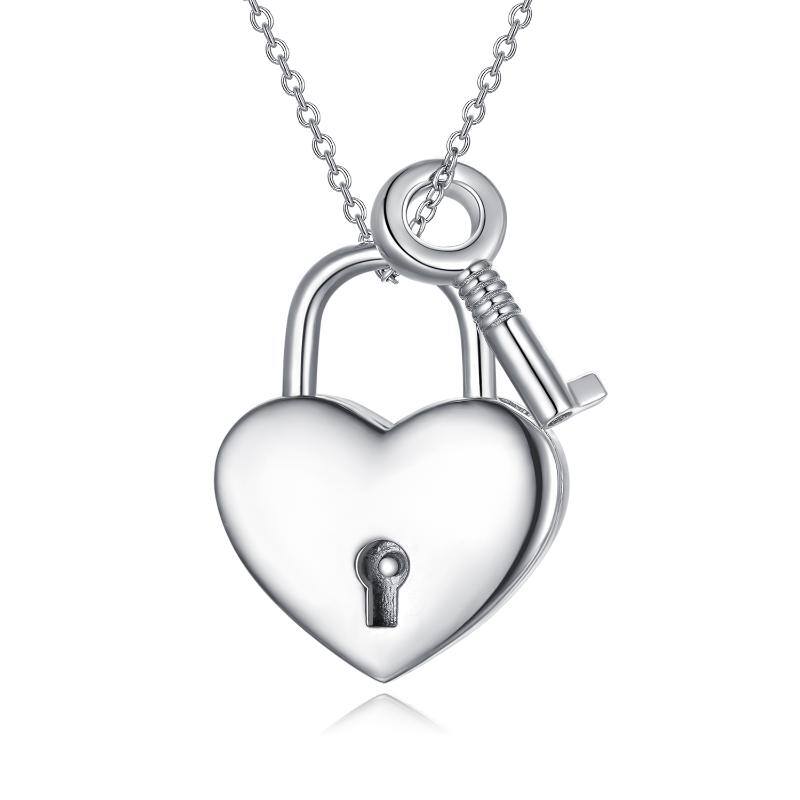 Heart Lock 925 Sterling Silver Key Pendant Padlock Necklace For Womens Teens Lover Egirls