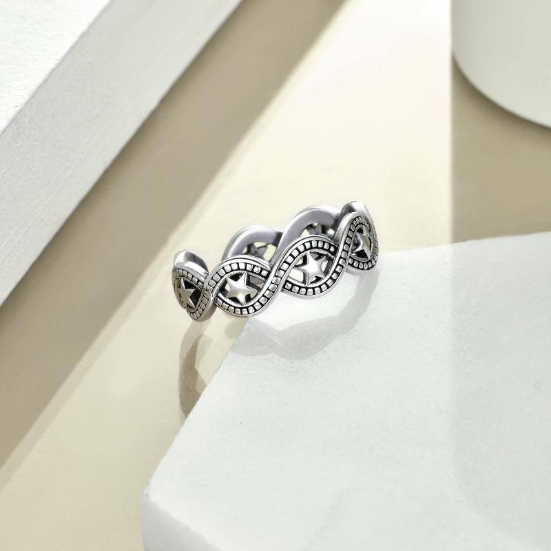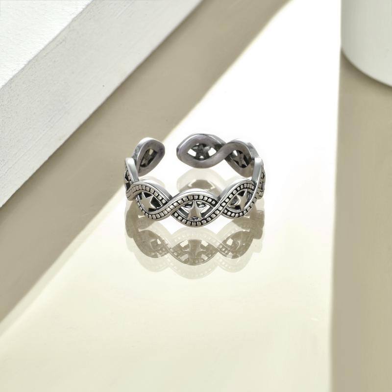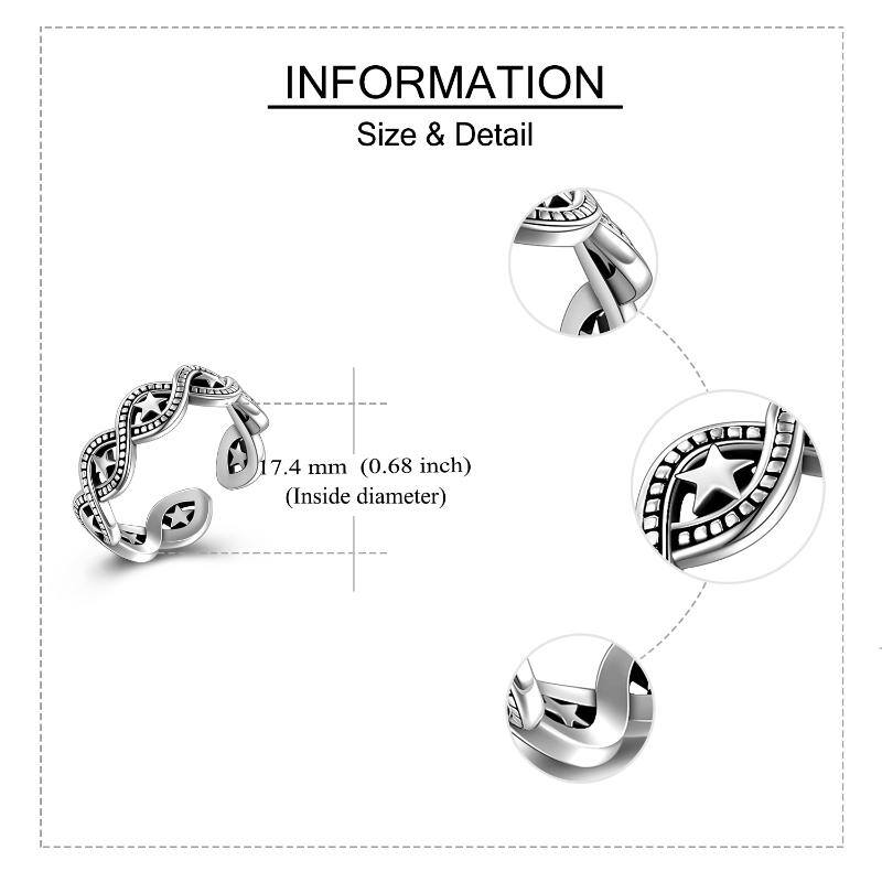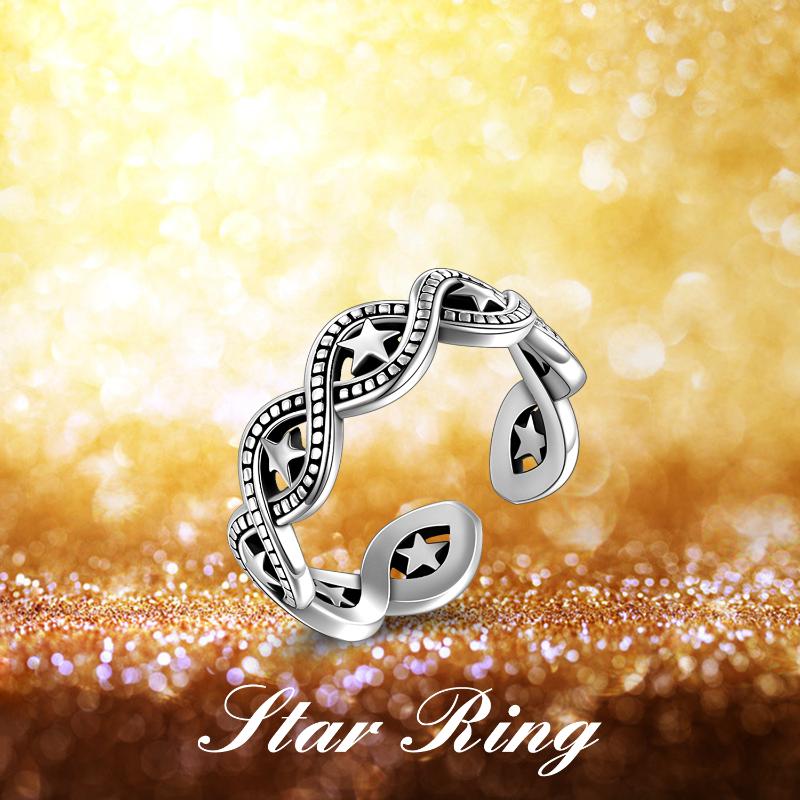 Sterling Silver Star Oxidized Opening Ring For Women And Men